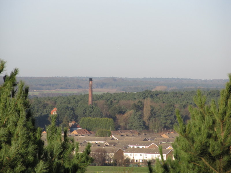 The chimney of Boughton Brake Pumping Station from Ollerton Pit Woods |
